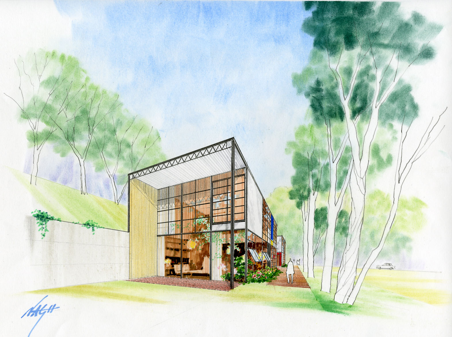 NASH160 PHOTO GALLERY//no,4 2021/8/2 Photo gallery イームズ邸 設計//チャールズ&レイ・イームズ夫妻 1949年 所在地//ロサンゼルス パシフィックパリセーズ 画材//パステル*マーカー*鉛筆 NASH160